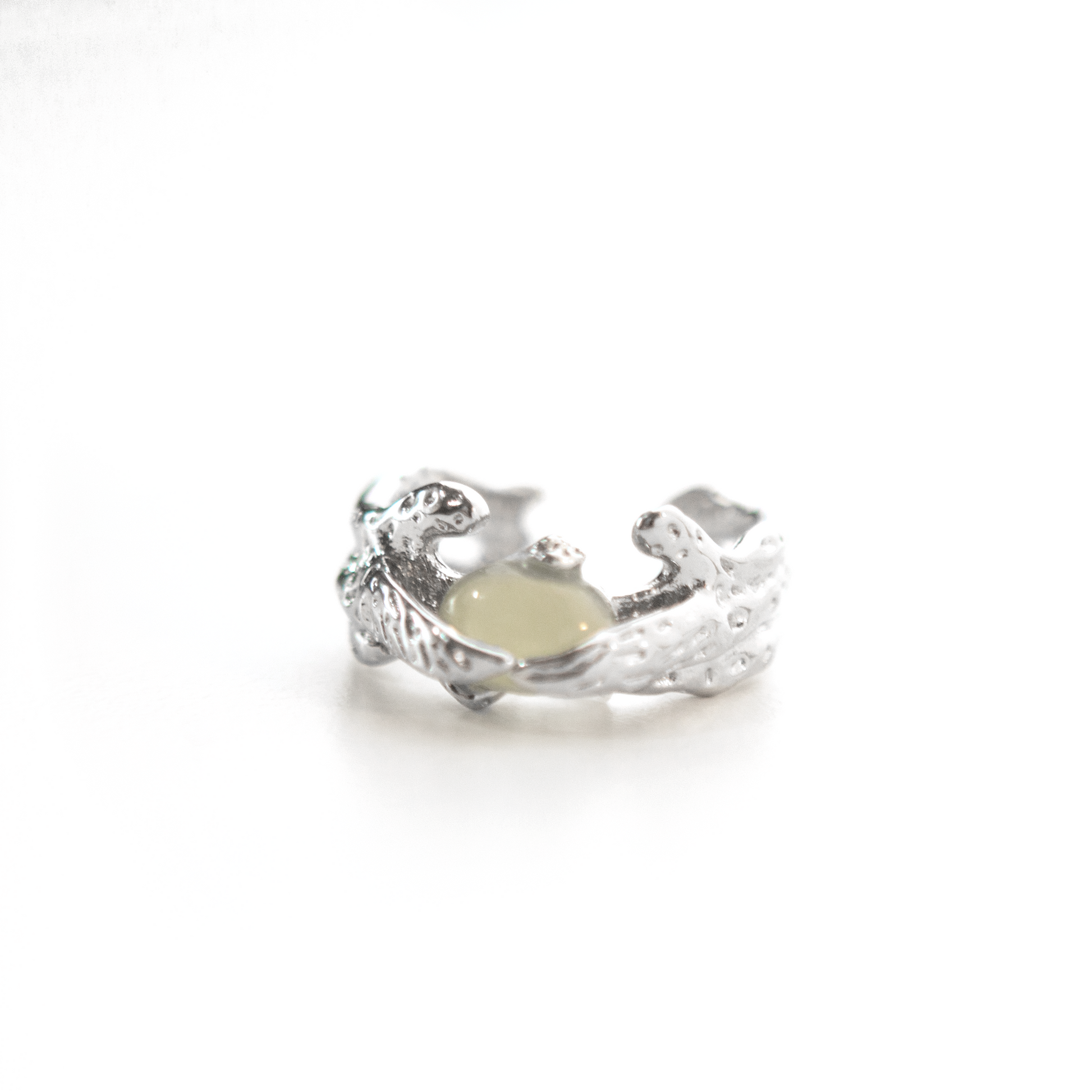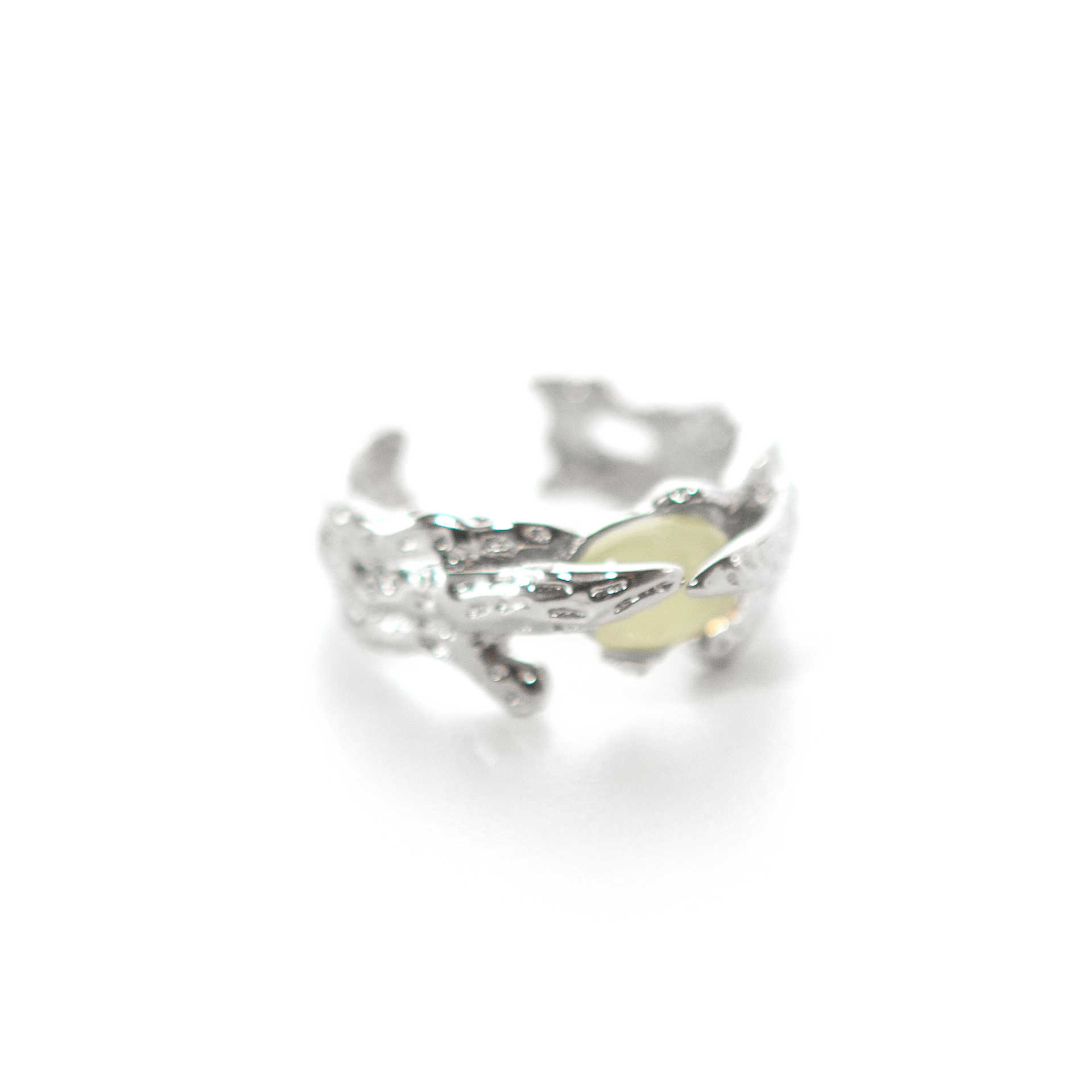 Une bague enchanteresse, une pièce unique qui capture l'essence de la magie. En son centre se trouve une petite pierre de jade ovoïde, rayonnante de beauté et de charme naturels. Le design de la bague évoque les deux mains délicates d'un elfe, enlaçant délicatement la pierre de jade, évoquant un charme et une élégance féeriques.
